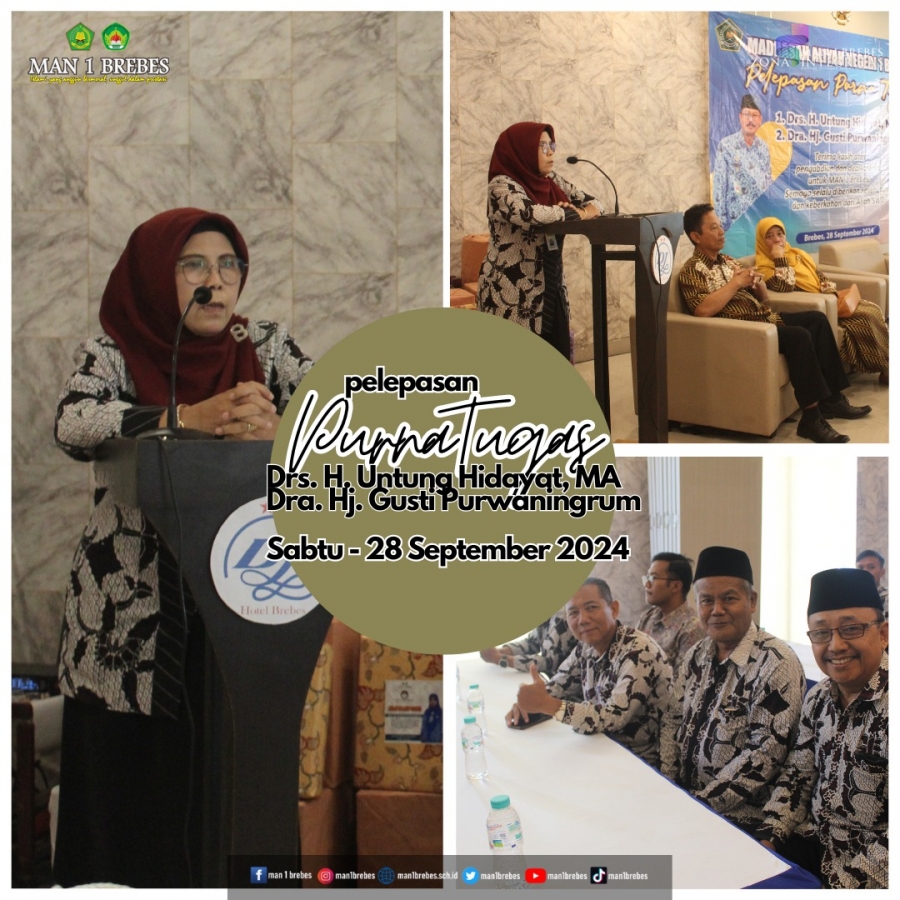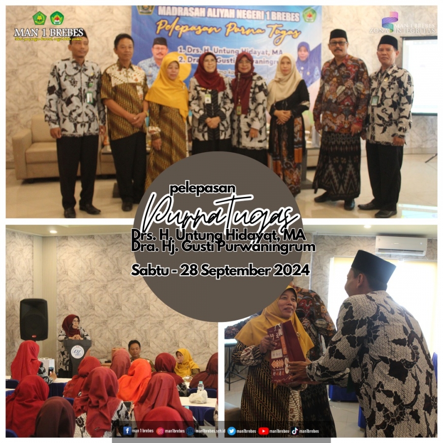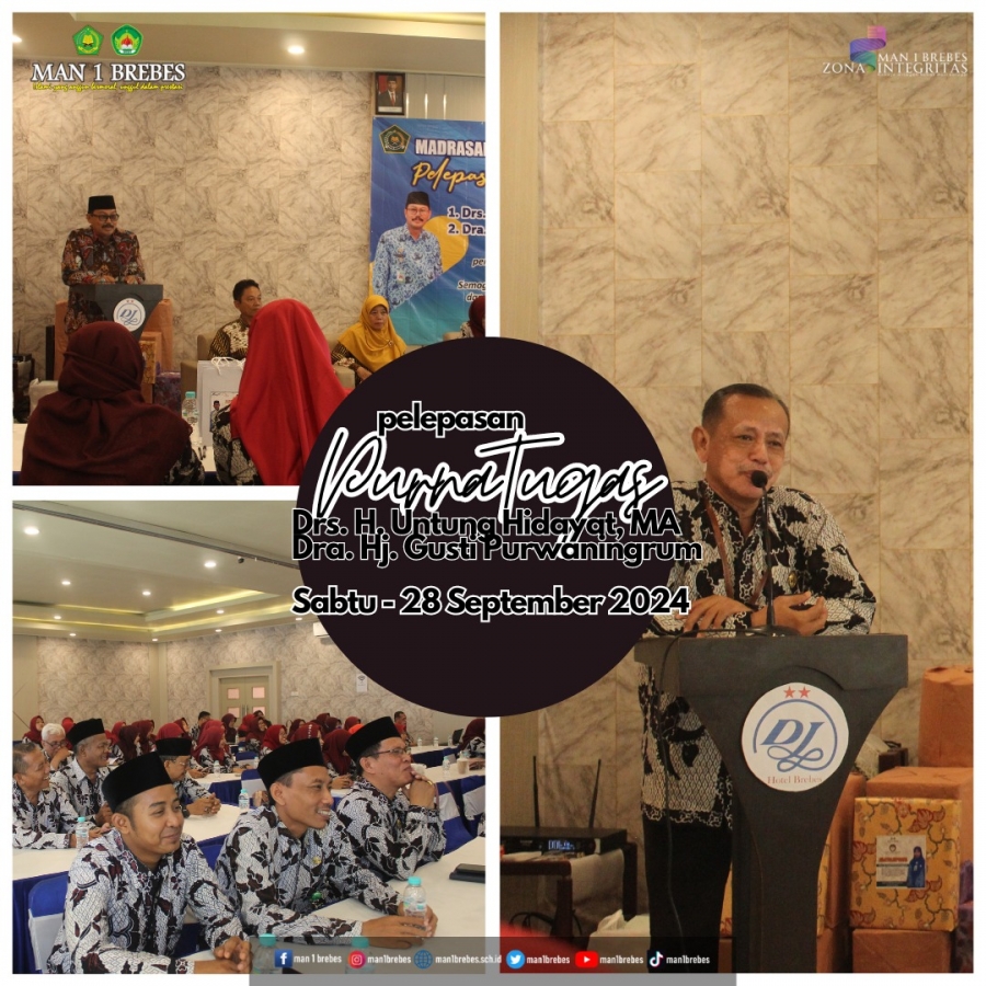 MAN 1 Brebes menggelar peningkatan mutu pengembangan kompetensi guru melalui Bimtek Pembelajaran Berdiferensiasi dan Pemafaatan Aplikasi Magic School Dalam Pembelajaran juga mengagendakan pelepasan purna tugas bapak Drs. H. Untung Hidayat dan ibu Dra. Hj. Gusti Purwaningrum bertempat di hotel Dedy Jaya Brebes (Sabtu, 28/9/2024).