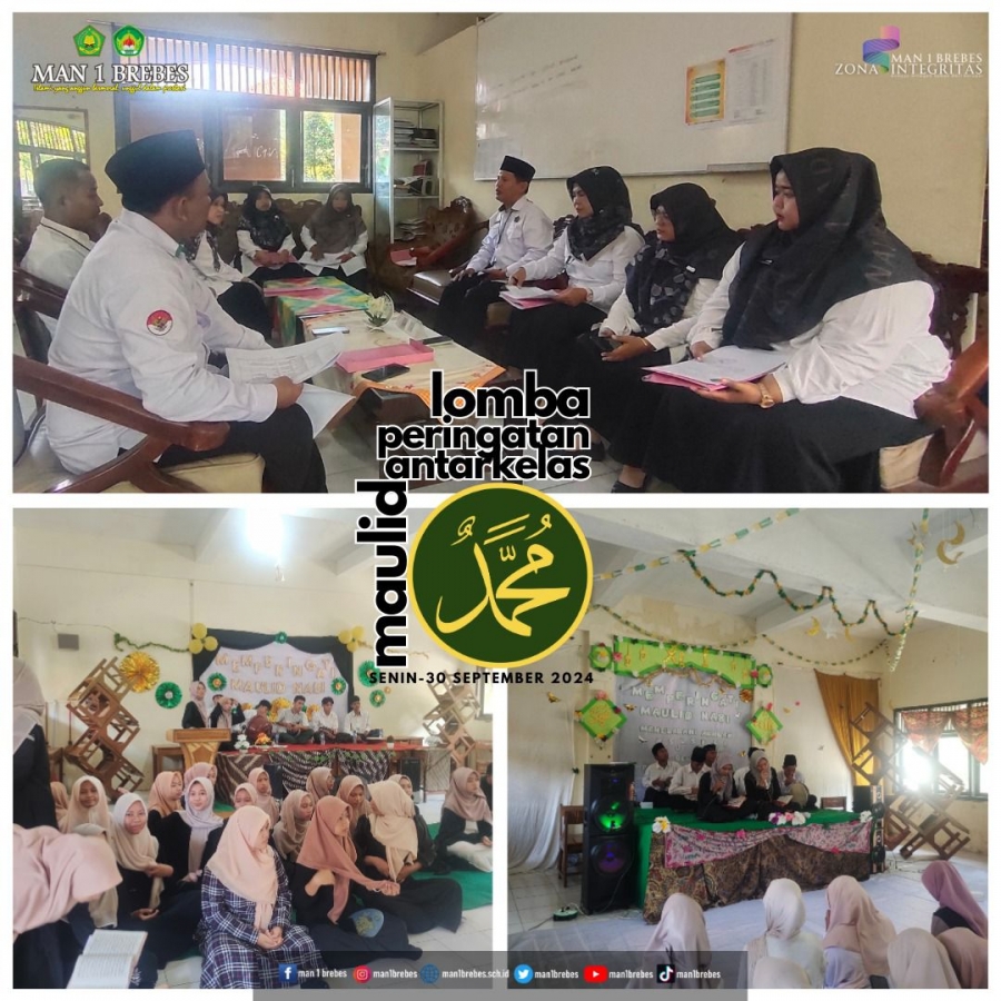 Brebes (MAN 1 Brebes) – Dalam rangka memperingati Hari Maulid Nabi Muhammad SAW, MAN 1 Brebes mengadakan serangkaian lomba yang melibatkan seluruh peserta didik pada hari Senin, 30 September 2024. Kegiatan tersebut dibuka secara resmi oleh Wakil Kepala Madrasah Bidang Akademik, Bapak Amaludin S.Ag, M.Pd.I. Dalam sambutannya, beliau menyampaikan bahwa kegiatan ini bertujuan untuk menanamkan rasa cinta kepada Nabi Muhammad SAW serta mempererat kebersamaan di antara para siswa melalui lomba menghias kelas dan acara maulidan di setiap kelas.